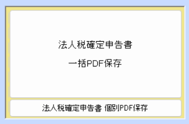 下の上段の図は申告書作成画面の[法人税確定申告書一括PDF保存]ボタンです。下側にある[法人税確定申告書個別PDF保存]ボタンを押すと表示が切り替わり、下段の図のように個別保存ボタンが表示されます。